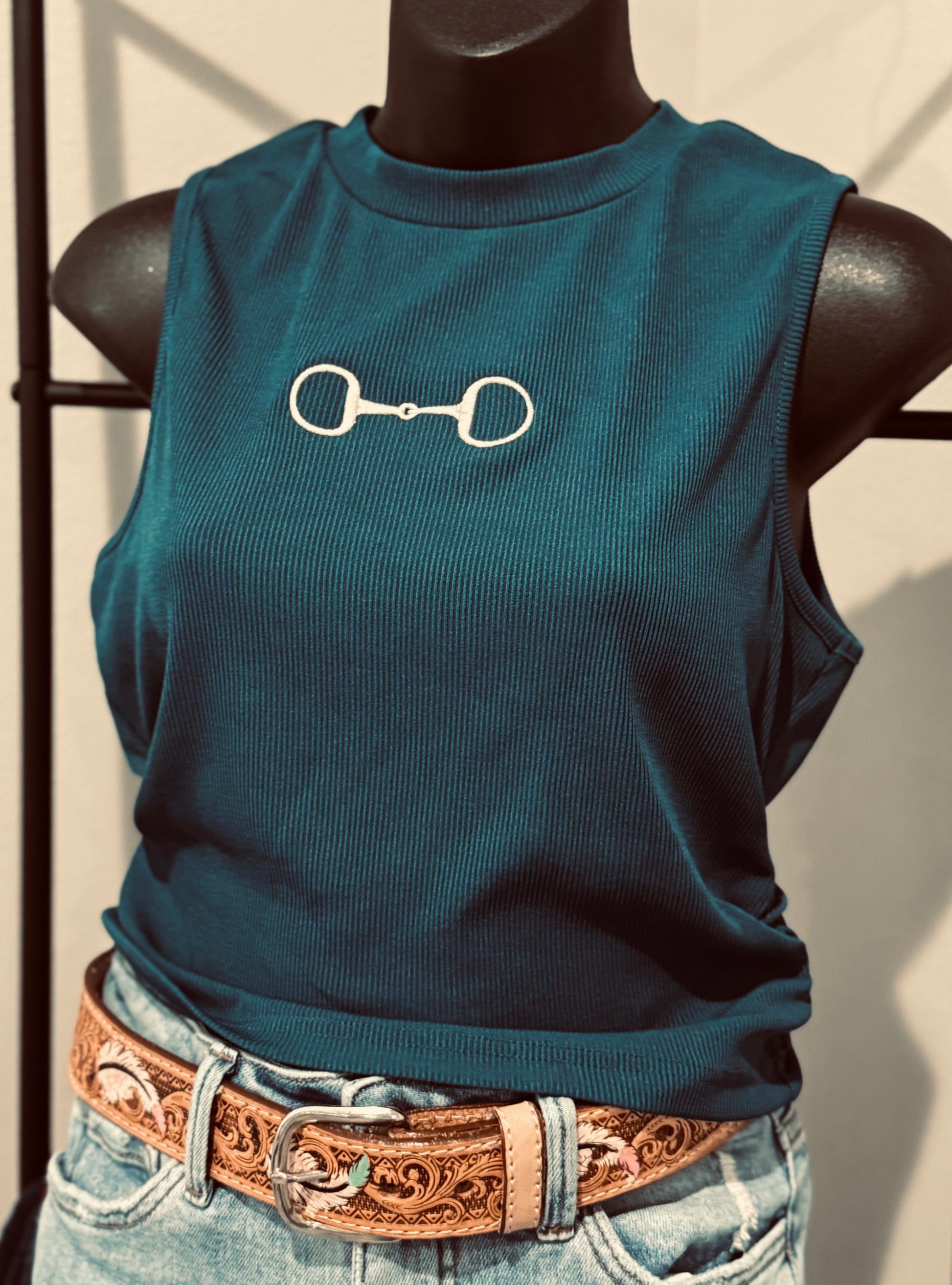 Horse Bit Embroidery Ribbed Tank- Medium✨