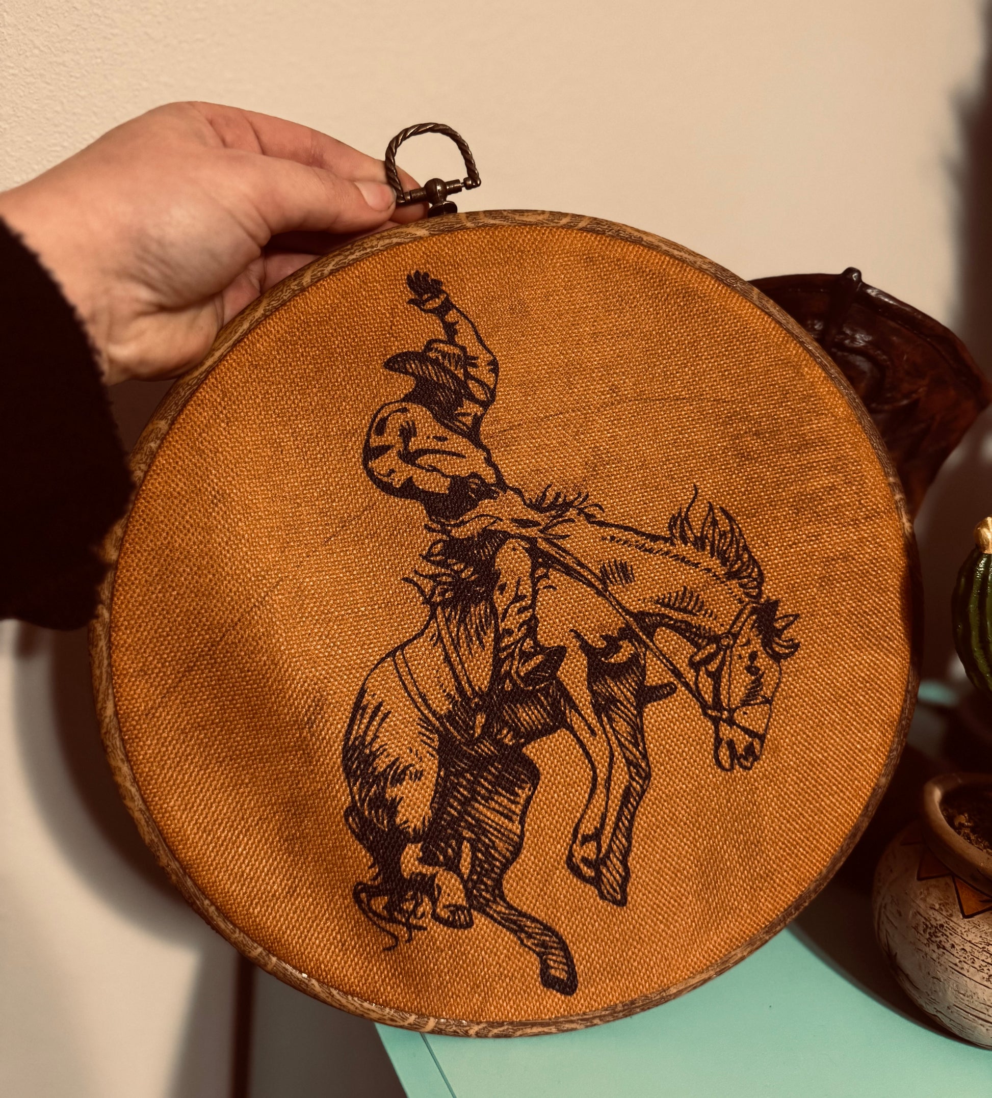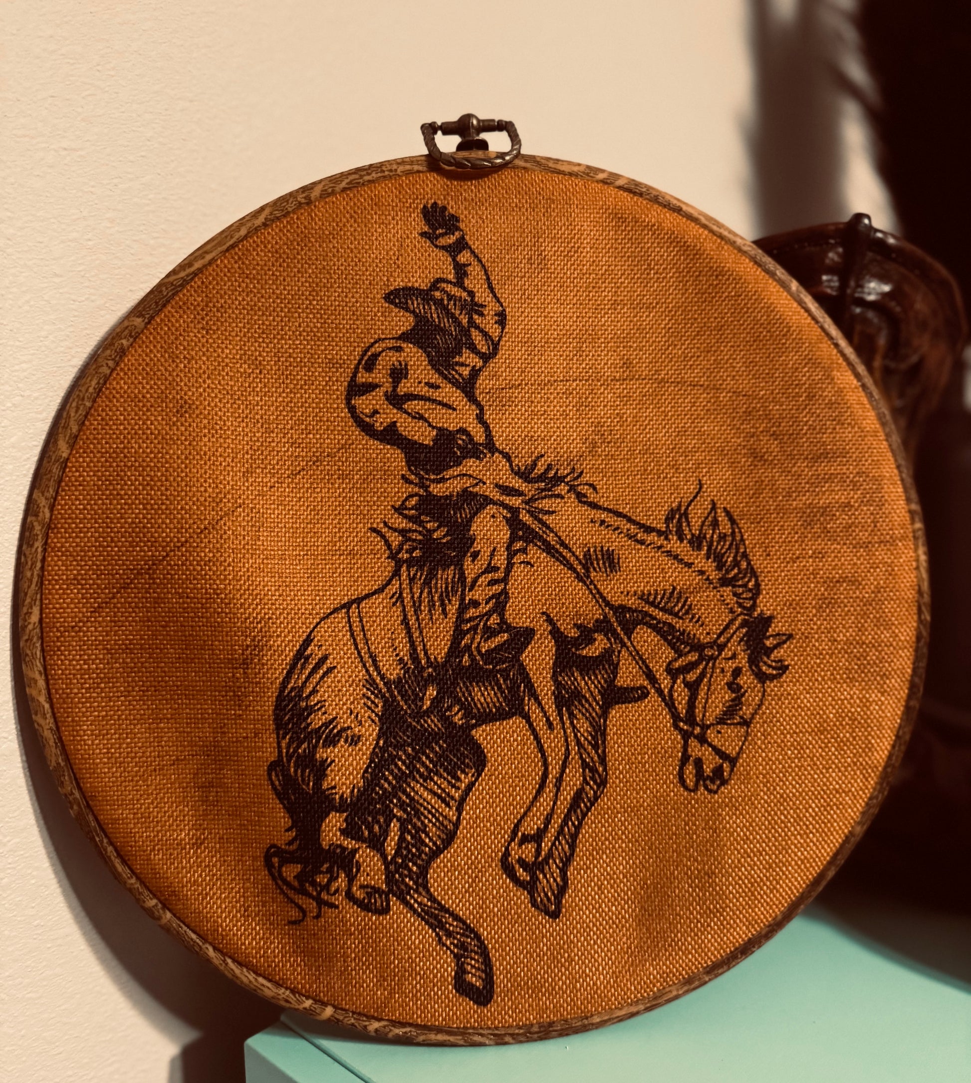 Vintage Bronco Rider Embroidery Hoop Wall Art- Consignment piece